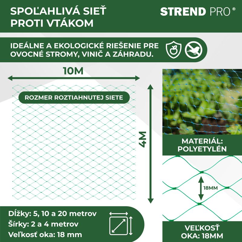 The Strend Pro net is an effective solutionfor protecting fruit trees, bushes, and vines from birds.Thanks to its fine mesh and durable material, it provides reliable protection without restricting light and air access to the plants.