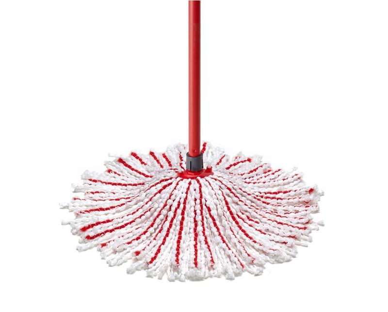 Inovatívna technológia kombinujúca biele strapce mikrovlákien so špeciálnymi červenými strapcami ponúka nový čistiaci výkon. Červené vlákna mopu pomáhajú zbierať chlpy a častice, zatiaľ čo biele strapce nasávajú tekutiny a odolné nečistoty. Mop možno použiť na všetky typy podláh, ako sú parkety, dlaždice alebo vinylové či drevené podlahy.