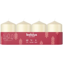 Bolsius Pillar Advent candles are the ideal choice for your Christmas celebrations. Cream-colored candles measuring 48x100 mm are packed in sets of 4 and will add an elegant touch to your festive decorations. Create a magical atmosphere during the Advent season with these high-quality candles, designed for long and safe burning.