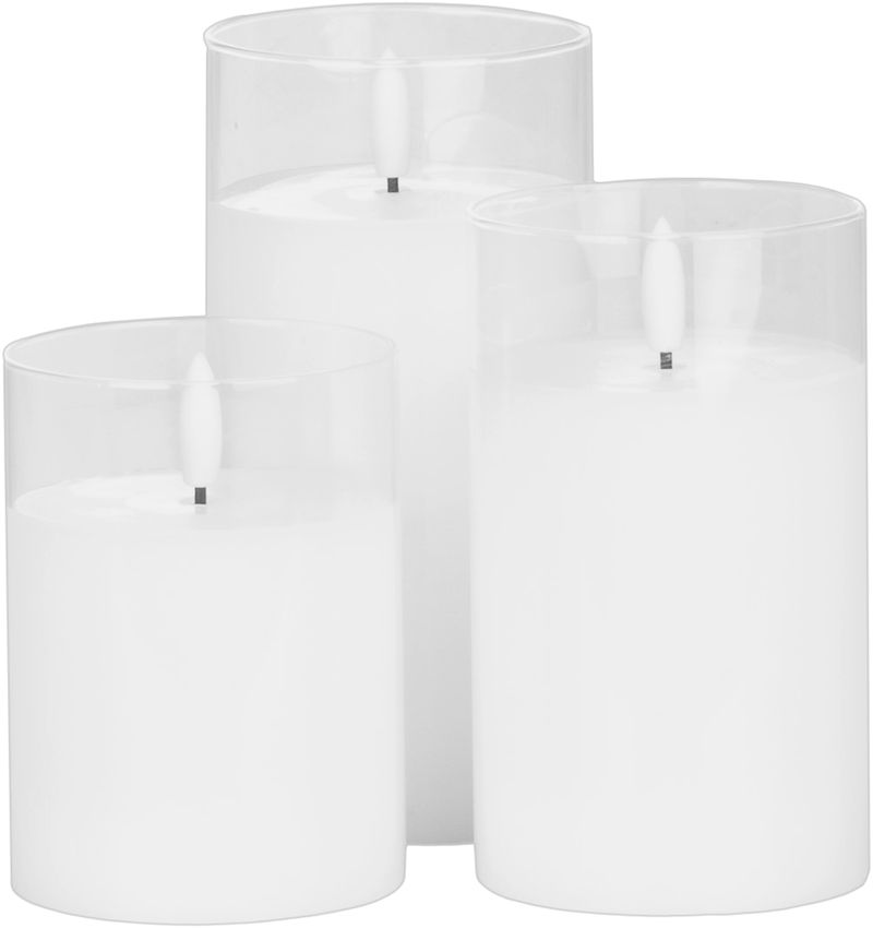 Candle MagicHome Christmas, glass, 1xLED warm white, 7.5 x 10/12.5/15 cm, battery operated