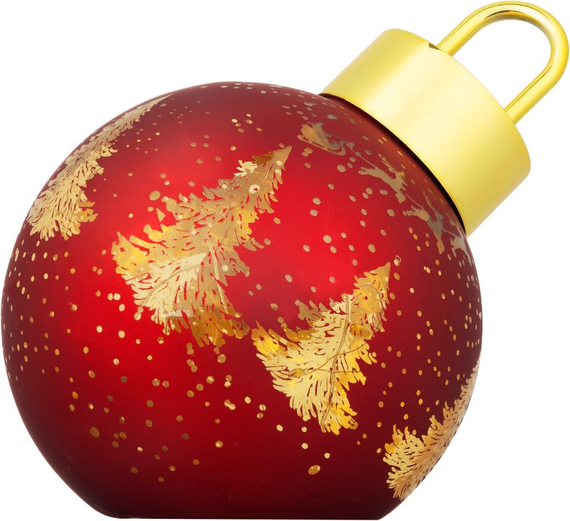 Dodajte svojmu domovu elegantnú sviatočnú atmosféru s červenou vianočnou guľou MagicHome. Táto dekorácia je vyrobená zo skla a zdobená jemným vzorom zlatých stromčekov, ktoré sa nádherne rozžiaria vďaka 10 LED diódám s teplým bielym svetlom.
