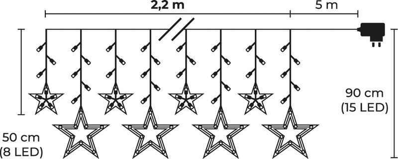 - Typ osvetlenia: LED reťaz – svetelný záves s hviezdami
