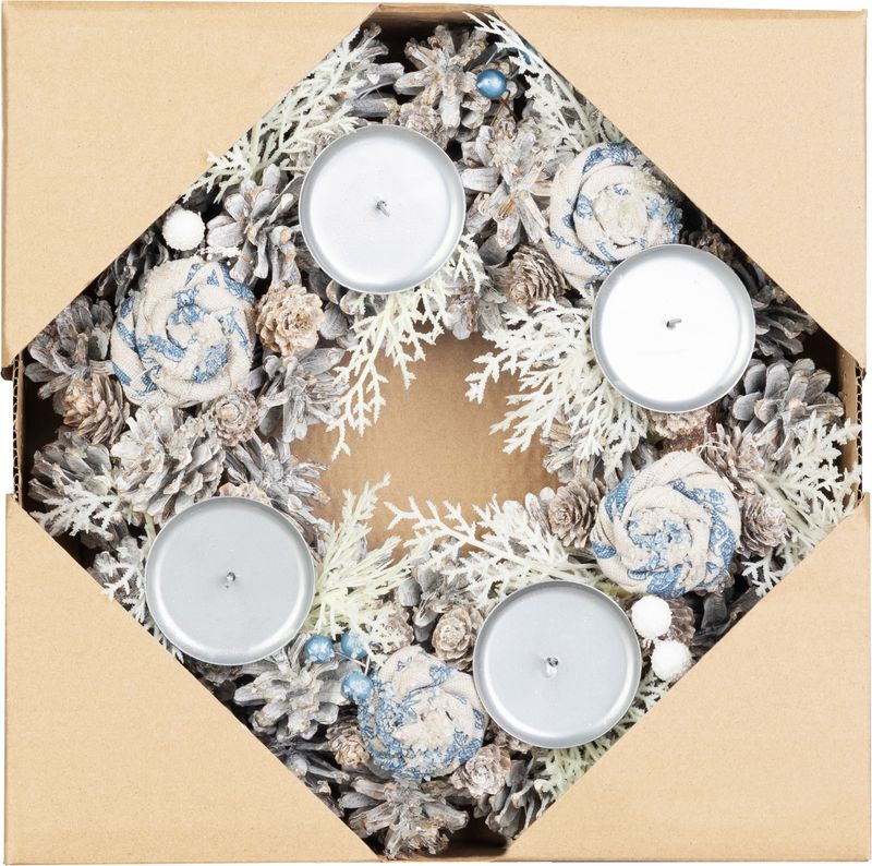 Adventný veniec MagicHome Vianoce v jemnej modro-bielej farbe je dokonalým doplnkom pre vaše sviatočné dekorácie. Veniec zdobia šišky, kvety a drobné ozdoby v kombinácii s prírodnými materiálmi, ktoré vytvárajú elegantný a svieži vzhľad.
