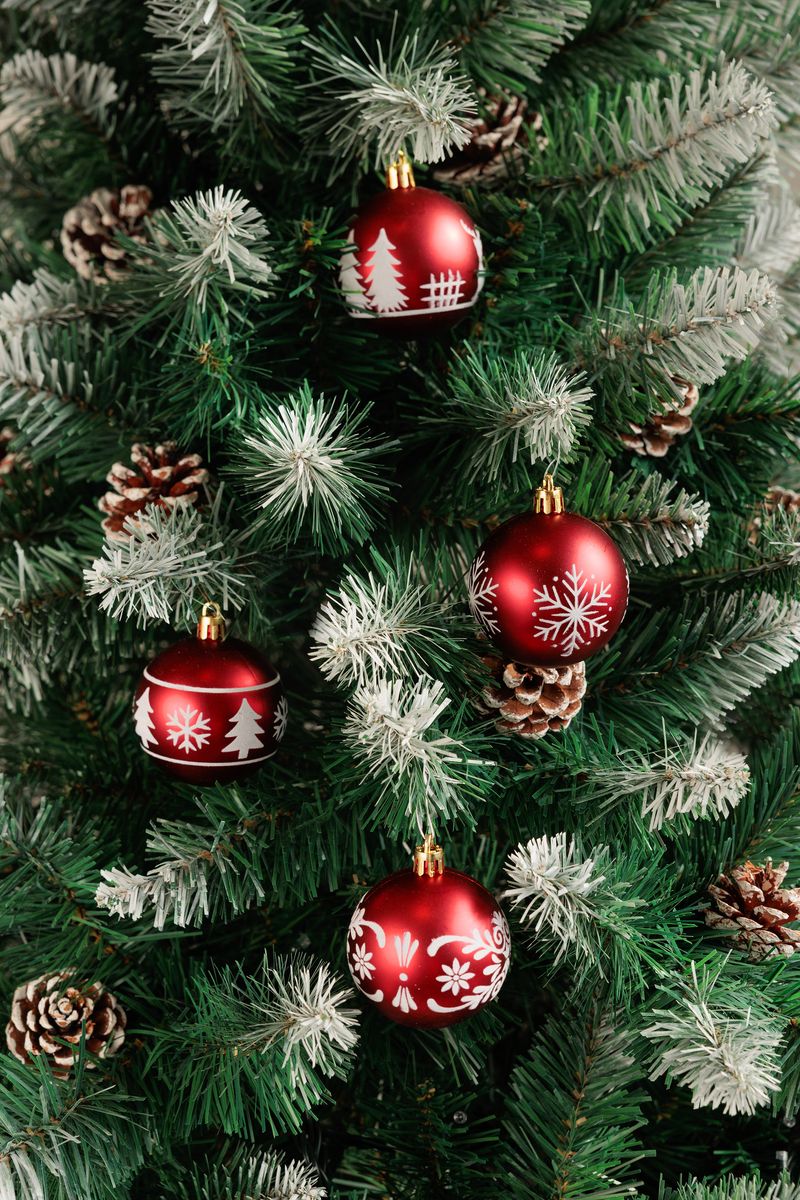 Baubles MagicHome Vianoce, 12 pcs, 6 cm, red with white ornament, for Christmas tree
