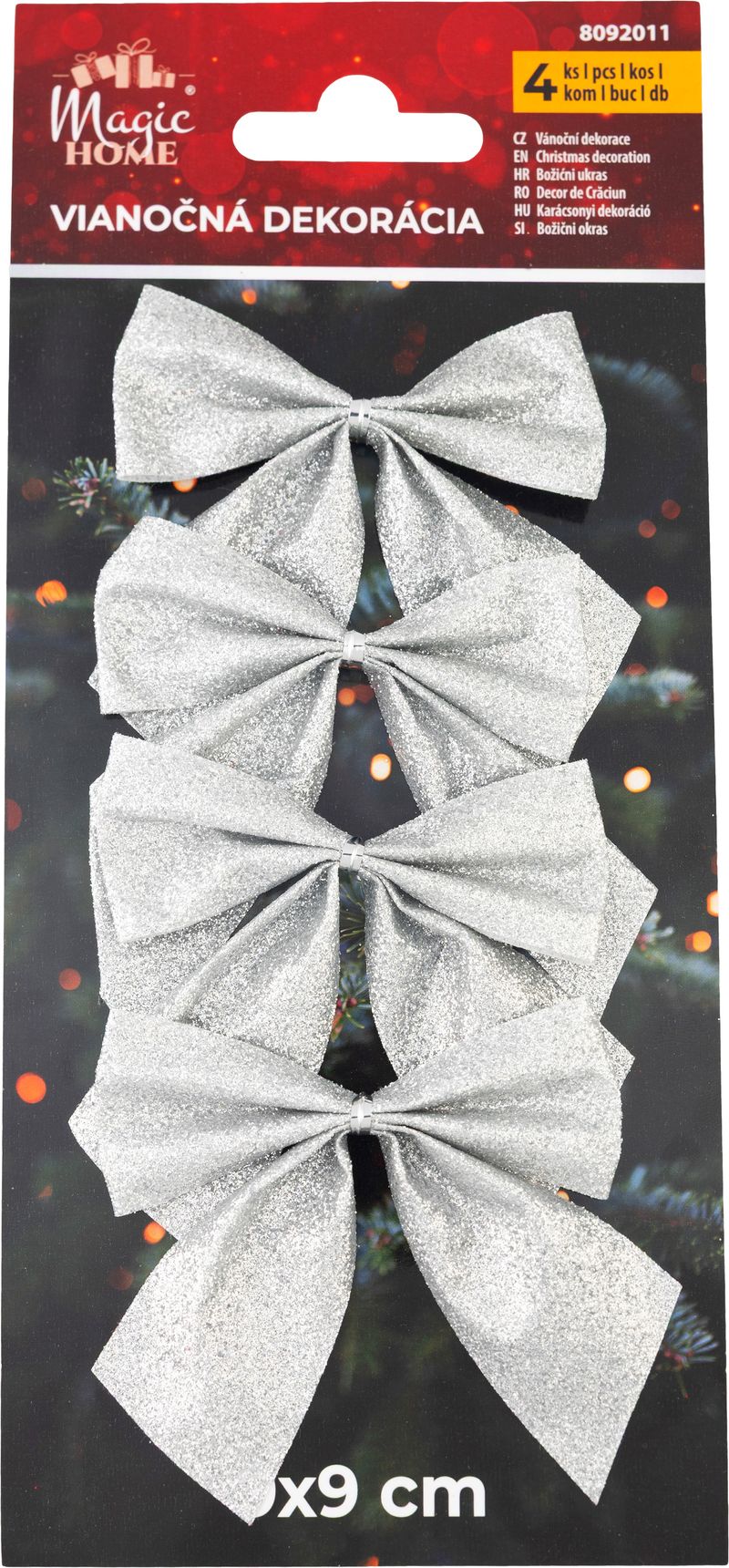 Decoration MagicHome Vianoce, bow, silver, pack. 4 pcs, 9 x 9 cm