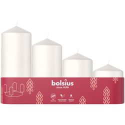 Bolsius Pillar Advent candles are the perfect addition to your festive decorations during Christmas. The set includes 4 red pillar candles of different heights (60 mm, 80 mm, 100 mm, and 120 mm) with a diameter of 48 mm, allowing for attractive arrangement, for example, on an Advent wreath.