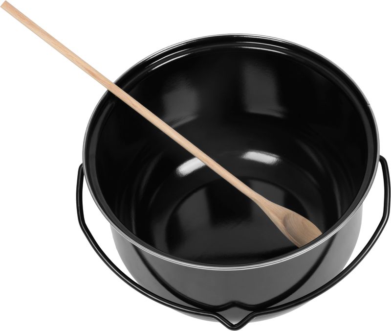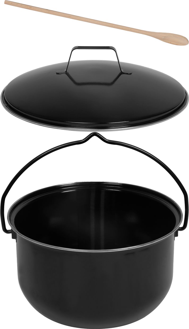 Cauldron Set Strend Pro, complete, for goulash/feast, 14 liter, enameled, with ladle, lid, and woode