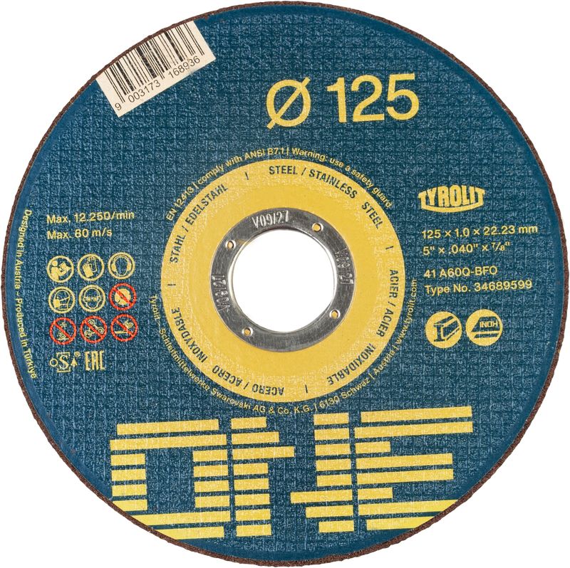 Kotuc Tyrolit ONE 125x1,0mm, 41, A60Q-BFO, ocel/nerez, bal. 100ks
