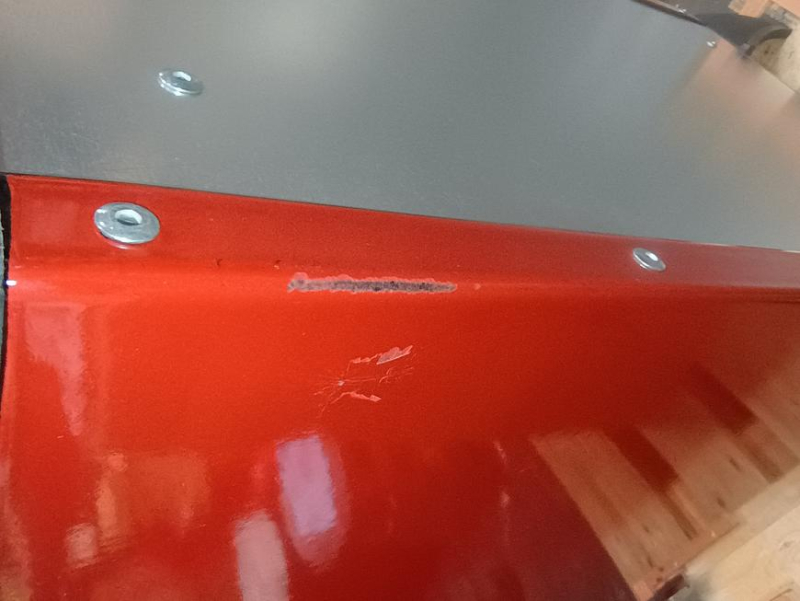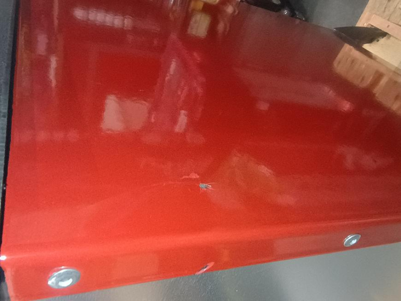 DEFECT DESCRIPTION: Oplieskana farba, na bočnom okreji aj mierna deformácia.