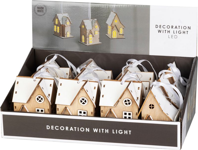 Decoration, House, 3xLED, mixed patterns, 1x CR2032, Sellbox 12 pcs