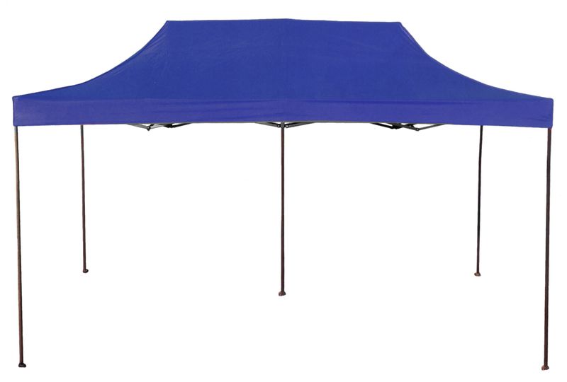 The tent is designed for garden use. The upper part of the roof covering is made of PVC material, which is resistant to sunlight and rain. The cover is blue. The main metal structure is made of solid steel, which provides a solid base for placing the roof cover and for keeping long bars in a vertical position. After assembling the structure, it is necessary to fix the tent to the ground. The tent must be placed on a flat surface. The dimensions of the tent are 3 x 6 m, which provides enough space to place, for example, tables and chairs.