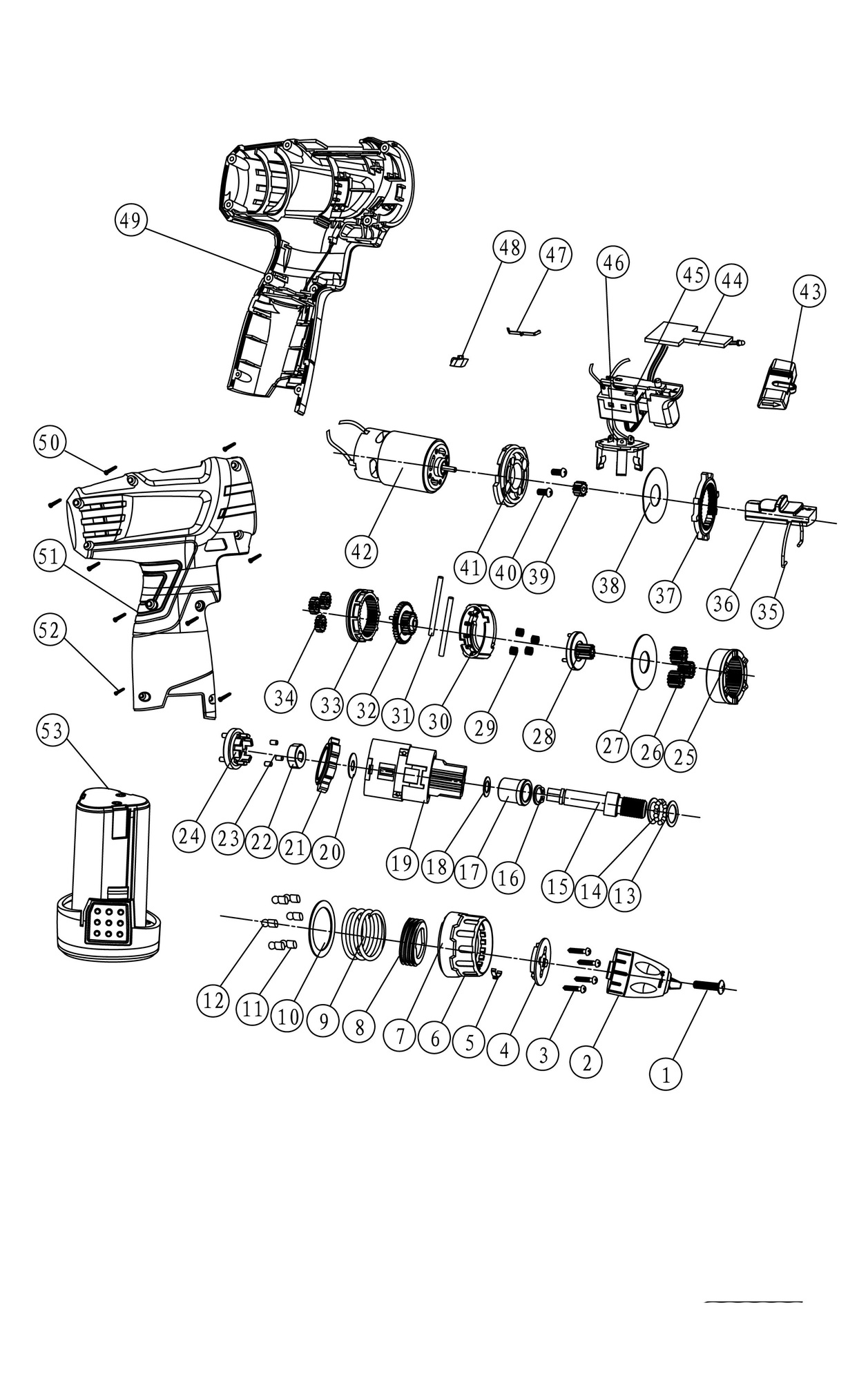 After pressing the button, the chuck starts to spin; the brake function instantly stops the chuck after releasing the button. The screwdriver can spin either left or right and also supports setting the torque. The battery level is displayed by a LED light. Comfort during work is guaranteed by its lightness.