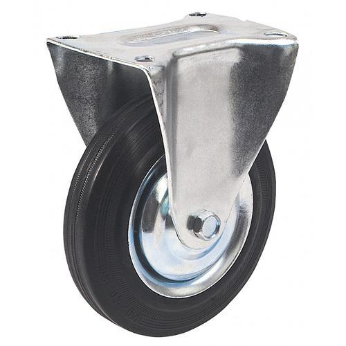 - steel plate, galvanized - standard rubber tire wheel diameter: 125 mm Wheel width: 34 mm Bearing: needle clamping hole spacing: 80x60 mm diameter of clamping holes: 9 mm flange size: 102x84 mm height: 155 mm load capacity: 100 kg