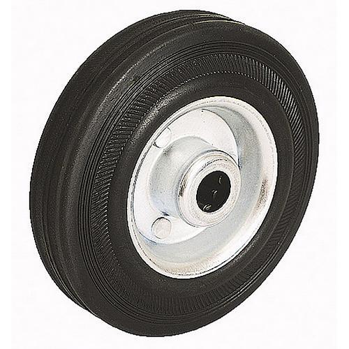 - steel plate, galvanized - standard rubber tire wheel diameter: 100 mm Wheel width: 27 mm Bearing: needle hub diameter: 12 mm hub length: 40 mm load capacity: 60 kg